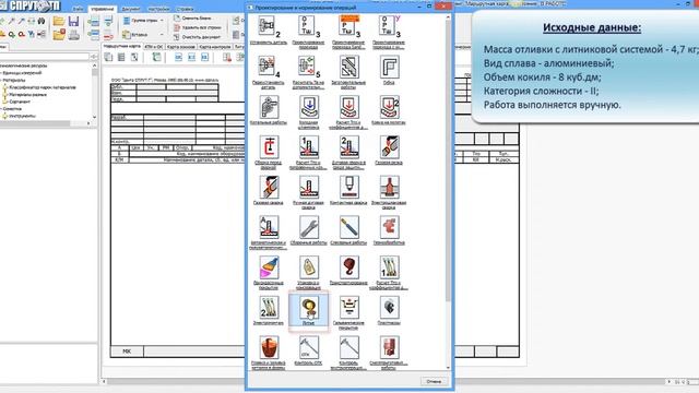 Модуль автоматизированного нормирования «Литье кокильное» предназначен для расчета технически обоснованных норм времени на работы, выполняемые при кокильном литье в литейных цехах машиностроительных предприятий в условиях массового, крупносерийного, среднесерийного и мелкосерийного типов производства. Модуль автоматизированного нормирования «Литье кокильное» основан на сборнике «Общемашиностроительные нормативы времени на работы, выполняемые при центробежном литье, литье под давлением, по выплавляемым моделям и при кокильном литье». Норматив учитывает вид сплава и нормируемые операции. В результате нормирования получаем текст перехода норму подготовительно-заключительного и штучного времени Тшт. В ролике рассмотрен пример расчета времени на изготовление отливки методом кокильного литья. https://csprut.ru/spruttp/normirovanie/litmetkokil/ Сайт https://csprut.ru/ Скачать ПО https://csprut.ru/download/ Контакты https://csprut.ru/contact/