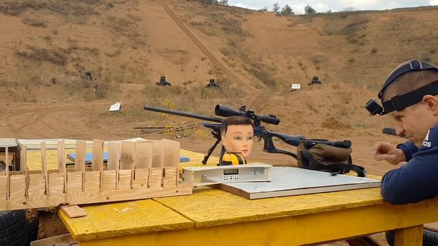 Выстрел из винтовки калибра 22IR ( 5.6 мм ) с одного метра по 11 листам фонеры толщиной 5 мм каждая, с замером начальной скорости пули.