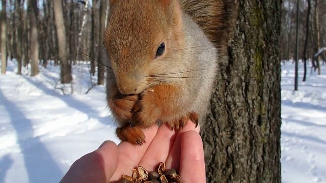 Иногда Ушастик заходит поесть кедровых орешков