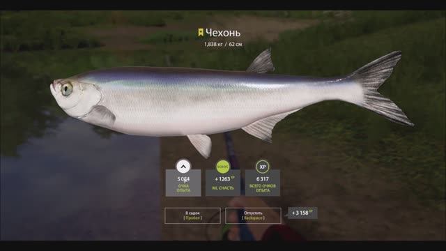 Чехонь, трофейная рыба, 1 кг 838 грамм, река Сура, игра Русская рыбалка 4