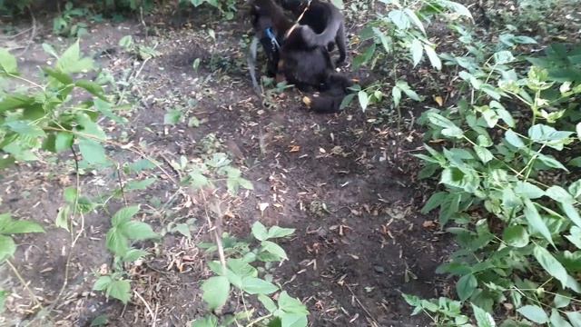 Как же без кустов обойтись, гуляют котики.