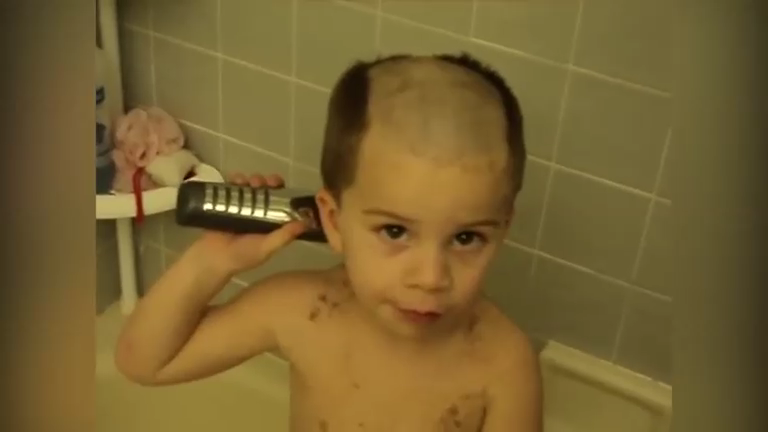 Маленькие дети пытаются стричь сами себя.