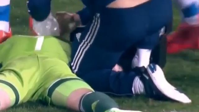 Игорю Акинфееву попадают файером в голову№1