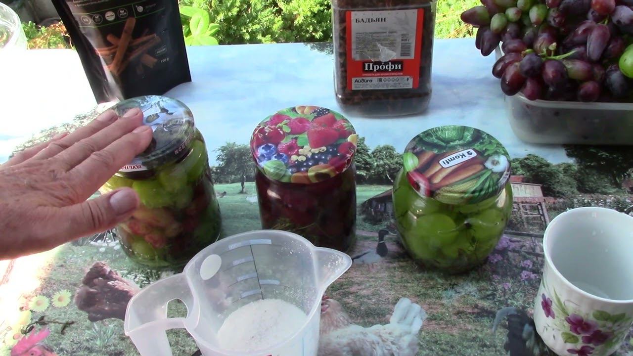 Яндекс Дзен - https://dzen.ru/id/620b3fd678237536da3a759a RuTube - https://rutube.ru/channel/24746918/ В контакте https://vk.com/serdukov1974/ Рецепт: Виноград - 1 кг Листья смородины, вишни, тимьян, розмарин по вкусу Смесь 4 перцев по 5 горошин на банку Лавровый лист - 1 шт. Бадьян - 1 звездочка на банку Кориандр семена - 1 щепотка Корица 1 палочка на 3 банки Маринад на 1 литр воды: Сахар - 150гр Соль 1/2 ч. ложки Уксус 9% -70 мл(3 столовые ложки)