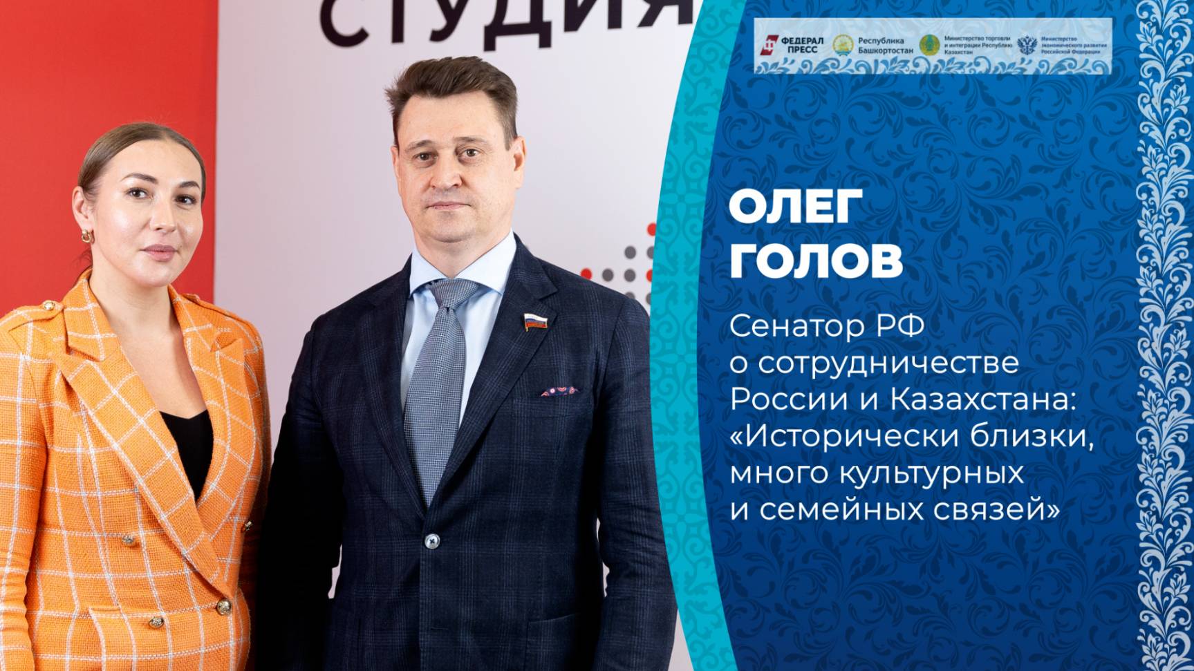 В Открытой студии «ФедералПресс» на полях форума «Россия – Казахстан» в Уфе сенатор РФ Олег Голов, представитель от госсобрания Курултая Республики Башкортостане Олег Головов рассказал о важных направлениях сотрудничества между двумя странами, взаимодействии Казахстана и Башкирии, а также поделился мнением о том, сможет ли Россия организовать экспорт газа в Китай через Казахстан в условиях санкций.