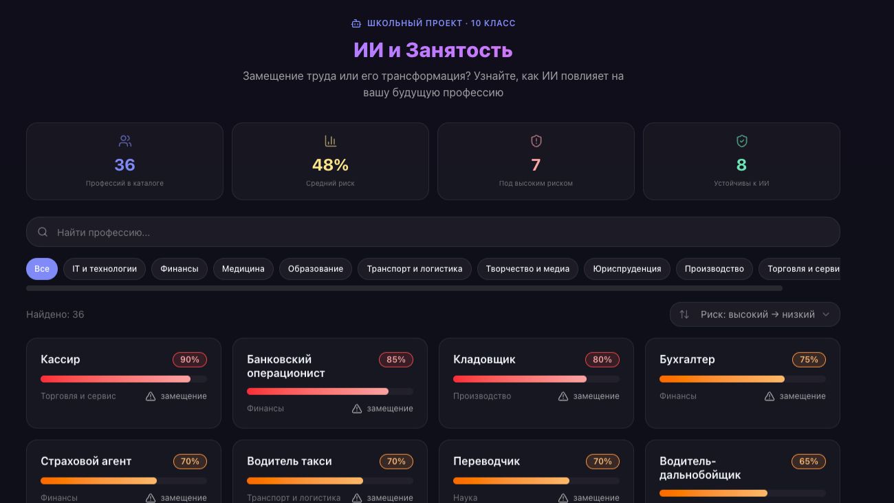 Видеозащита «ИСКУССТВЕННЫЙ ИНТЕЛЛЕКТ И ЗАНЯТОСТЬ. ЗАМЕЩЕНИЕ ТРУДА ИЛИ ЕГО ТРАНСФОРМАЦИЯ?» https://aioi.up.railway.app