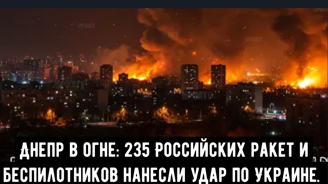 Днепр в огне: 235 Российских ракет и беспилотников нанесли сильный удар по Украине.