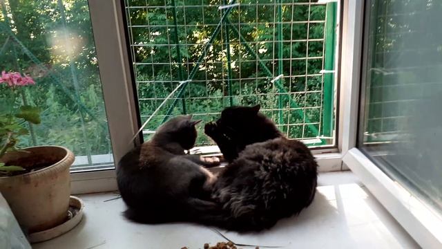 На окошке моются, котята , молодцы.