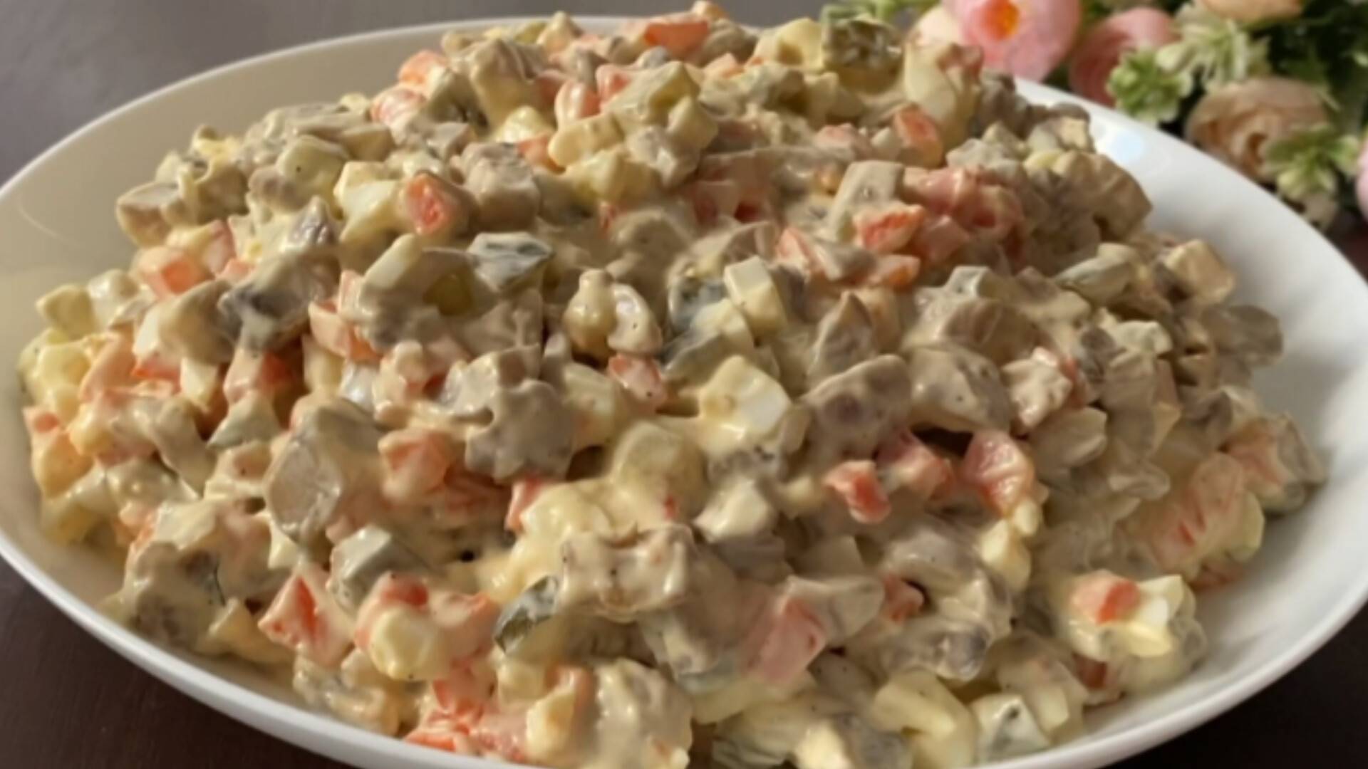 Покоряет сразу!!! Очень вкусный салат с грибами.