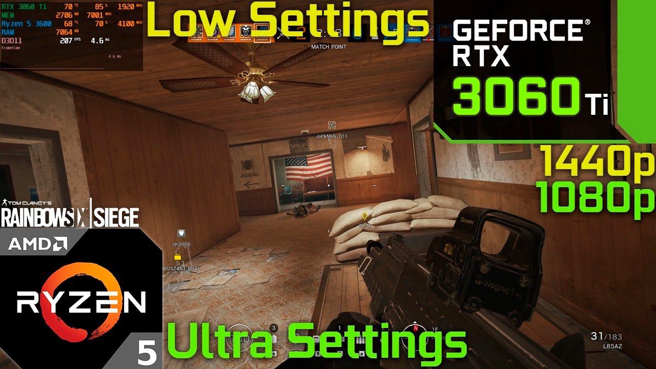 Tom Clancy's Rainbow Six Siege : RTX 3060 Ti 8GB + Ryzen 5 3600 | 1440p, 1080p Ultra & Low Settings