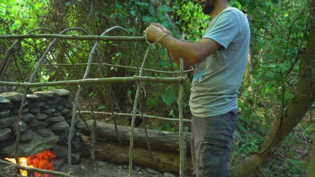 ХАКАН Catch and Cook, PRIMITIVE Fishing. Bushcraft MUD Shelter