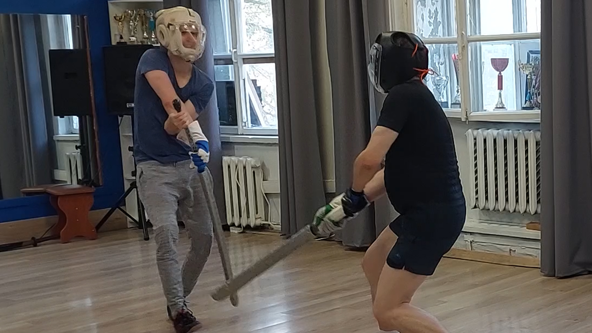 Фехтование двуручным мечом о-катана - спарринг в школе японского фехтования Katana Club на чанбара