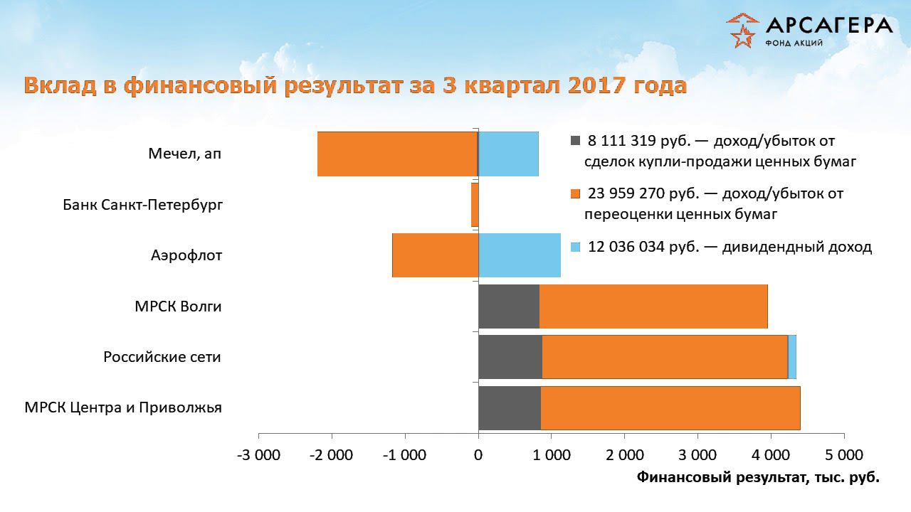 Наши фонды. Арсагера - фонд акций. 3 квартал 2017