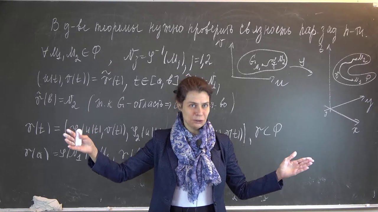 00:00 Начало лекции 07:04 Допустимая замена параметров, утверждение 1. 31:26 Формула преобразования векторного произведения при замене параметров. 33:33 Утверждение 2: независимость понятия параметрически заданной поверхности от выбора декартовой системы координат. 48:04 Утверждение 3: простая поверхность является частным случаем параметрически заданной поверхности. 53:36 Утверждение 4. 55:32 Утверждение 5: независимость понятия гладкой поверхности от выбора декартовой системы координат. 1:11:19 Понятие касательной плоскости: утверждение-определение. 1:14:00 Нахождение единичного вектора нормали для простой поверхности, поверхности уровня, параметрически заданной поверхности. 1:33:51 Определение ориентированной поверхности.