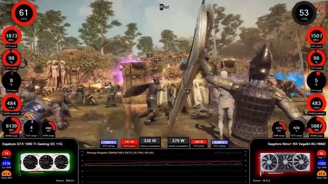 Scene: Strange Brigade DX12 (3840x2160) GPU1: Gigabyte GTX 1080 Ti Gaming OC 11G GPU2: Sapphire Nitro+ RX Vega64 8G HBM2 Tools: OCAT, MSI Afterburner, Destiny Beta version 3.3, Hitfilm Incredible Benchmarks Guide: http://gpureport.cz/clanky/151-incredible-benchmarks/incredible-benchmarks-uvod.aspx?article=151&page=1 Site: http://www.gpureport.cz Video finder: http://www.gpureport.cz/VideoFinder.aspx