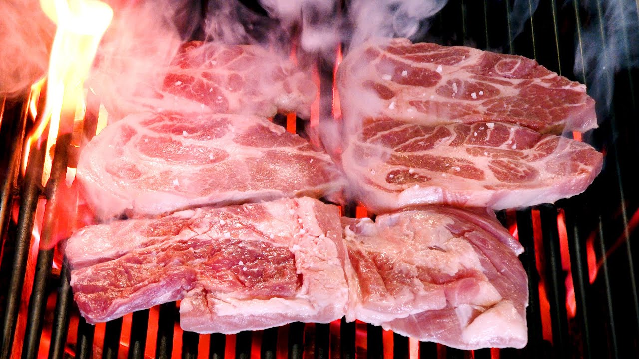 Корейский ресторан, в котором готовят свиные ребрышки на гриле.