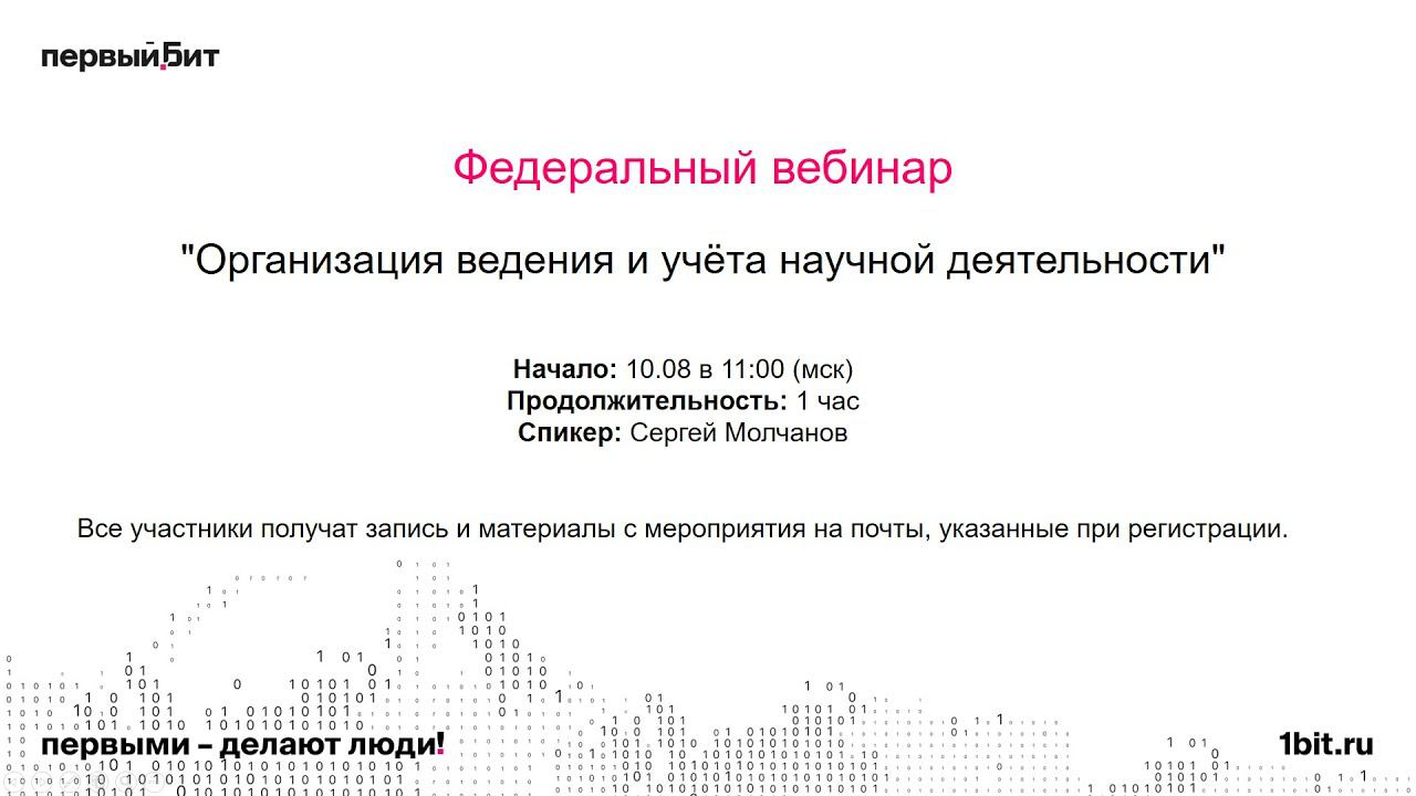• Сложности учёта научных трудов сотрудников. • Организация работы по учёту научных трудов на базе решения «БИТ.Наука». • Оперативное получение актуальной отчётности в любых доступных разрезах. • Демонстрация подсчёта индивидуальных показателей результативности научной деятельности сотрудников, результативность научной деятельности структурных подразделений (рейтинг научных сотрудников, научных подразделений). • Получение объективной оценки научной деятельности работ сотрудников, подразделений за любой период. • Формирование статистики о проделанной работе сотрудника (число публикаций в рецензируемых изданиях, анализ индекса цитирования публикаций, участие в международных конференциях, грантах, НИР и т.д.). • Хранение результатов НИР организации в единой информационной базе. • Практика внедрения.