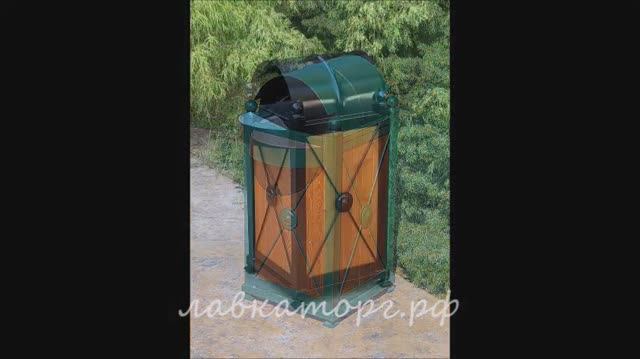 Урны парковые для мусора с пепельницей и крышкой. Съемная оцинкованная пепельница. Открывающаяся крышка для освобождения мусорного контейнера. Стальной сварной корпус на четырех опорных столбах с шаровыми навершиями. Чугунные опоры. Отделка деревом лиственницы или перфорированной сталью. Металлический корпус окрашен полимерной порошковой краской наружного применения фирмы PULVER. Дерево лиственница, сорт АВ - окрашен в 3 слоя со всех сторон. Съемный оцинкованный контейнер для мусора емкостью 52 литра окрашен полимерной порошковой краской наружного применения фирмы PULVER. Предусмотрено скрытое анкерное крепление урны к мостовой через специальные кляммеры.