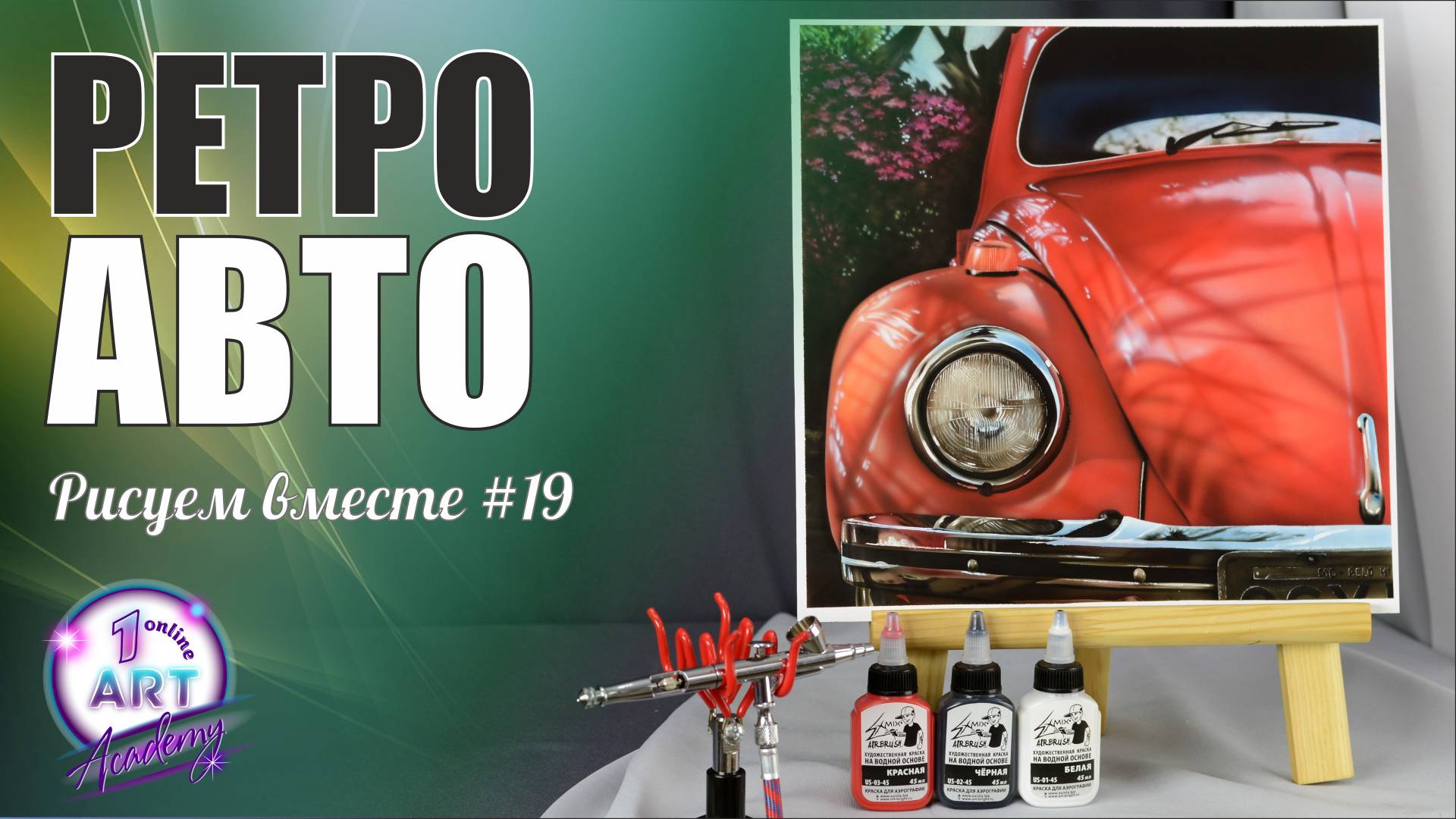 Друзья, всем привет! Сегодняшняя самостоятельная работа - это ретро автомобиль. Вы можете выбрать любой из трех вариантов. Это работа для улучшения Вашего навыка владения аэрографом. Здесь есть над чем потрудиться, используйте пленку если умеете, пускайте в ход ластики, лезвия, трафареты. Постарайтесь сделать как можно больше деталей. Исходники и дополнительные материалы у нас на сайте: https://1onlineartacademy.com/blog/751876 ПРИНЯТЬ УЧАСТИЕ В РИСУЕМ ВМЕСТЕ: ******************************************** Мы приглашаем всех желающих принять участие в нашем проекте, неважно где и когда Вы научились рисовать аэрографом, давайте рисовать вместе. Подробности на нашем сайте: https://1onlineartacademy.com/blog/667720 ******************************************** НАШ МАГАЗИН: -------------------------------------------- Все для аэрографии: https://1onlineartacademy.com/ru_store-all-0 -------------------------------------------- Горячие ссылки: --- Инструкция для новичков: https://1onlineartacademy.com/ru_stepwizard Инстаграм: http://instagram.com/art_bright_studio/ VK: http://vk.com/artbri FB: http://www.facebook.com/1OnlineArtAcademy --- Сайт Арт Академии: http://www.1OnlineArtAcademy.com/ Задайте свой вопрос на сайте или по телефонам: 8 (800) 707-59-13, +7 (495) 123-37-55