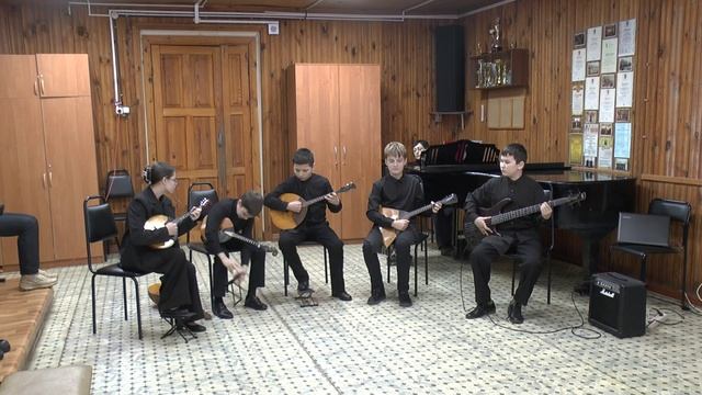 Ансамбль учащихся народного отдела ДШИ им. М.А.Балакирева: Чугунов Ярослав, Павлова Виктория, Подпругин Василий, Бабкин Алексей, Мусин Михаил Областной открытый конкурс ансамблей струнных русских народных инструментов им. М.В.Иорданского «От дуэта до октета» 15 февраля 2026 года Владимирская обл., г. Ковров II возрастная категория (от 13 до 17 лет включительно)