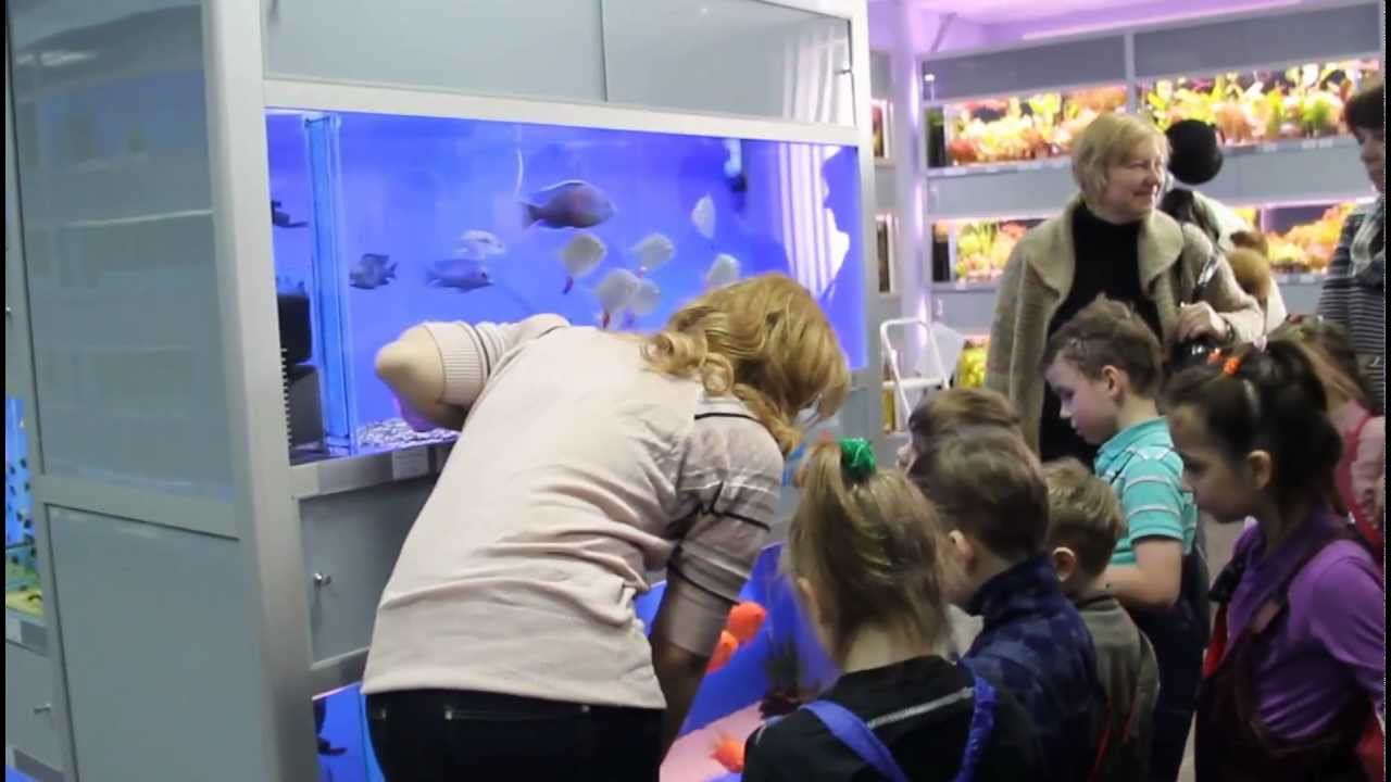 В аквариумном супермаркете «Аква Лого на Юго-западной» проводятся экскурсии для детей. Предлагаем вашему вниманию небольшой отрывок экскурсии, которая прошла 26 марта 2013 года. Экскурсовод -- специалист отдела «живого товара» супермаркета -- Елизавета Фурсенко, слушатели -- воспитанники и сопровождающие их сотрудники детского дома №11