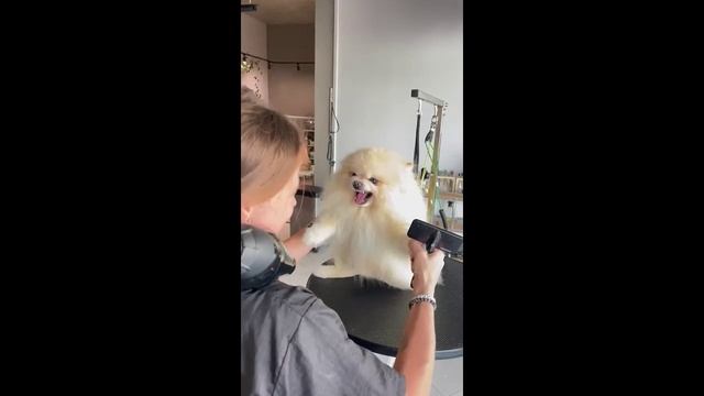 Померанский шпиц злится у грумера (uu)