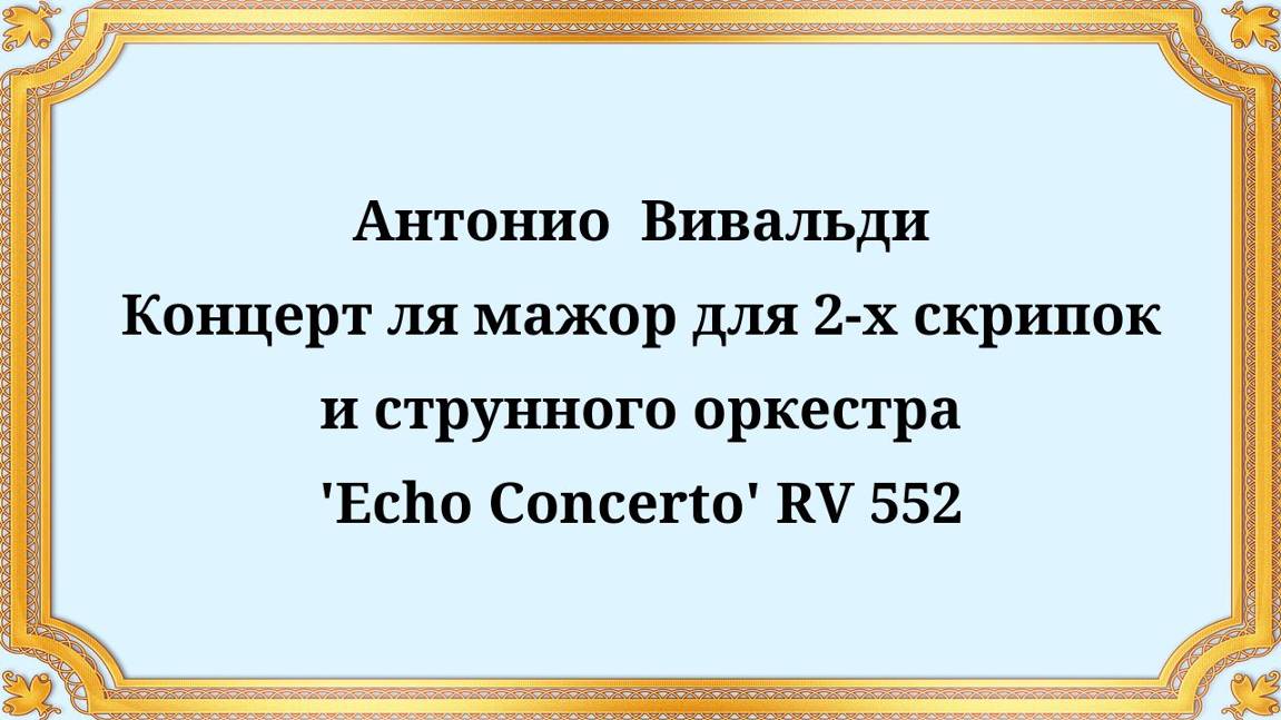 Антонио Вивальди Концерт ля мажор для 2-х скрипок и струнного оркестра 'Echo Concerto' RV 552