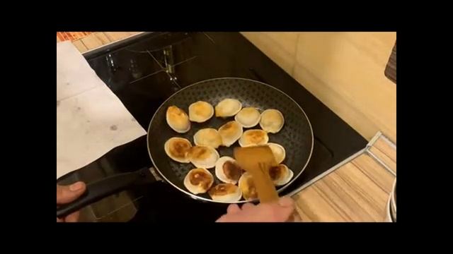 Жарим пельмени на сковороде.