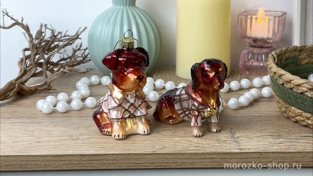 Набор стеклянных елочных игрушек СОБАЧКИ - ШОТЛАНДСКИЙ ШИК, 12 см, 2 шт., YA92448-набор