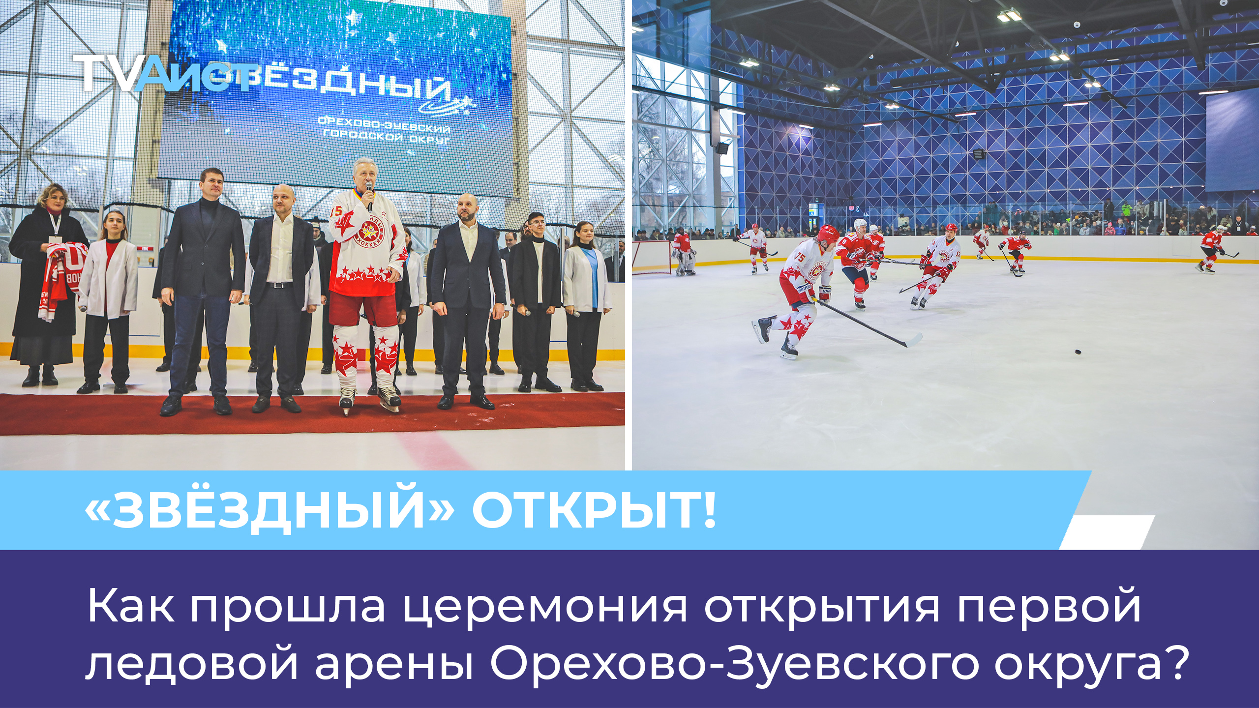 Сегодня, в День отечественного хоккея, открылся физкультурно-оздоровительный комплекс «Звёздный». Это первая крытая ледовая арена в Орехово-Зуевском округе. В день открытия прошёл зрелищный матч между легендами хоккея и сборной Орехово-Зуевского округа. В составе каждой команды были две пятёрки взрослых игроков и по одной пятёрке юных спортсменов. Подписывайтесь: • Яндекс.Дзен: https://zen.yandex.ru/tvaist • YouTube: https://www.youtube.com/@tvaist_oz • Информационный центр: http://informc.ru/ • ВКонтакте: https://vk.com/tvaist • Одноклассники: https://ok.ru/tvaist • Телеграм: https://t.me/o_zuevo