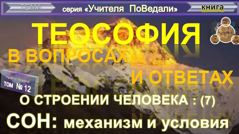 ТеоСофия в вопросах и ответах - О СТРОЕНИИ ЧЕЛОВЕКА (3 глава) - 7 тема: СОН: механизм и условия