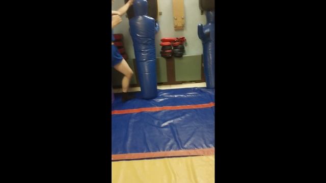 ушу-саньда. ТТМ на снарядах. атака коленями на короткой дистанции . Артём, Илья и Софья