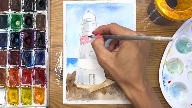 Как нарисовать маяк карандашом и акварелью начинающим | Рисунок поэтапно и легко для детей