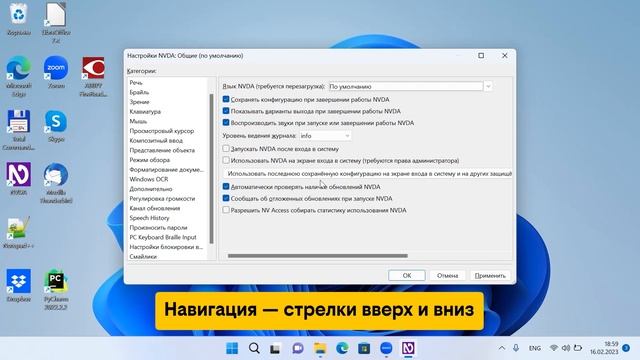 Альянс по защите детей в цифровой среде и билайн представляют базовый курс по цифровой грамотности для детей с нарушениями зрения. Курс: Использование компьютера с операционной системой Windows https://beeinclusion.ru/kurs/tests/os-windows/ Урок: Детальная настройка скринридера В этом уроке мы расскажем: Как быстро изменить настройки скринридера; Как попасть в меню NVDA. Материалы разработаны незрячими экспертами из сообщества Everland.