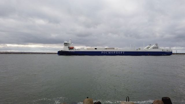 Корабль "маршал Рокоссовский" проходит морской канал, г.Балтийск