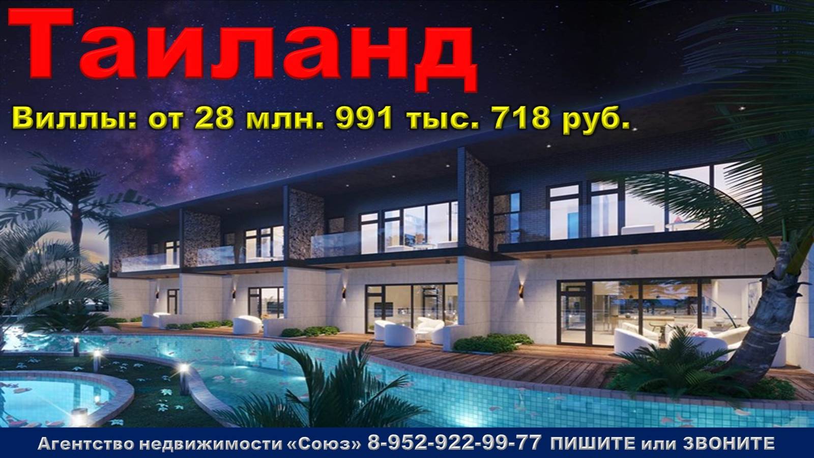 Подпишитесь на нас. Благодарим !!! https://www.youtube.com/@nedvigimoct/videos - мы на Ютубе https://dzen.ru/nedvigimoct?tab=longs&utm_referrer=dzen.ru - мы на Дзене https://rutube.ru/channel/27083000/videos/ - мы на Рутубе https://vk.com/club223108371 - мы в ВК https://ok.ru/lyubayan - мы в Ок Агентство недвижимости «Союз». Покупайте: Виллу в Таиланде. г.Пхукет, Тхеп Касаттри ул. Агент по новостройкам: 89529229977 (WhatsApp) Цены на виллы точно такие же как и у застройщика. Виллы продаются БЕЗ РИЭЛТОРСКОЙ КОМИССИИ !!!. 2к. вилла: от 28 млн. 991 тыс. 718 руб. Площадь общая: 148 м2 - 155.2 м2 3к. вилла: от 44 млн. 868 тыс. 135 руб. Площадь общая: 220 м2 Срок сдачи: сдан Срок выдачи ключей: 2 кв. 2021 Договор: К-П Тип дома: монолитный Тип отделки: отделка "под ключ" Парковка: есть Потолки: 3,2 м. Преимущества: Транспортная доступность. Развитая инфраструктура. Близость пляжа. Круглосуточное видеонаблюдение и охрана. Комплексное благоустройство территории. Паркинг. Описание комплекса:Это город будущего. Спроектированный с учетом 5-звездочной роскоши, безопасности и удобства на территории, комплекс вилл - эталон суперсовременной жизни высокого класса. Первоклассная недвижимость на Пхукете, в нескольких минутах езды от аэропорта, пляжа и нескольких популярных туристических достопримечательностей, включая один из самых престижных загородных клубов Пхукета. Отличная возможность для инвесторов на Пхукете, которые ценят удобство, близость к торговым центрам и досуг на свежем воздухе. Отель находится в 6 минутах езды от пляжа Майхао, самого длинного пляжа Пхукета. Расположенный на северо-западном побережье и являющийся частью национального парка Сиринат, этот нетронутый пляж простирается более чем на 11 км по большей части неосвоенной береговой линии. Этот район является местом отдыха для посетителей высокого класса, которые любят роскошь и активный отдых, которых привлекают ультраизолированные 5-звездочные курорты в этом районе. Международный аэропорт Пхукета, расположенный всего в 5 минутах езды, недавно модернизировал свои внутренние терминалы после успешного запуска новых зданий международных терминалов. Соединяющий все это с большей частью материкового Таиланда мост Сарасин – поистине впечатляющая общественная и коммерческая автомагистраль, протянувшаяся от национального парка Сиринат на юге до провинции Пханг Нга на его северной оконечности. Старый мост был заменен мостом Сарасин в 2011 году для размещения постоянно растущего числа туристов на Пхукете, но по-прежнему является популярным местом для наблюдения за Андаманским морем на закате. Загородный клуб Blue Canyon, излюбленное место любителей гольфа, признан одним из самых престижных гольф-клубов в Азии. Его территория площадью 700 акров проходит через каучуковые плантации и оловянные рудники. Владельцам ЖК предоставляется скидка 10% на посещение этого популярного поля для гольфа, расположенного всего в 5 км от комплекса. Еще в 6 км к западу от загородного клуба находится национальный парк Сиринат, который занимает большую площадь суши, но также защищает 68 квадратных километров морской флоры и фауны. Парк является популярной туристической достопримечательностью, поскольку включает в себя четыре пляжа: Май Као, самый длинный пляж Пхукета, Най Тон, Най Янг и Сай Каео. ЖК состоит из 92 роскошных вилл, построенных в 3 кластерах на 23 райских участках первоклассной земли в северной части Пхукета. Площадь апартаменто