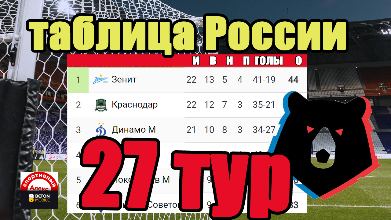 Футбол. Чемпионат России. РПЛ. 27 тур. Результаты. Таблица. Расписание.