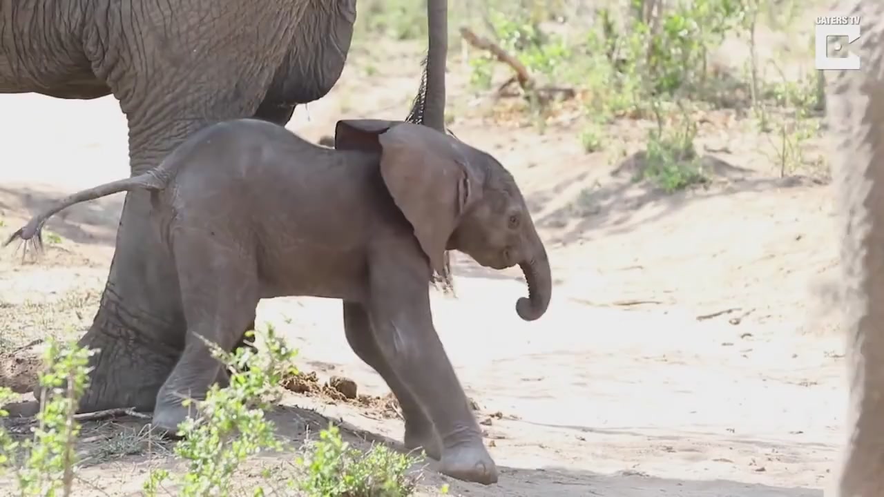 Забавный слоненок учиться ходить.