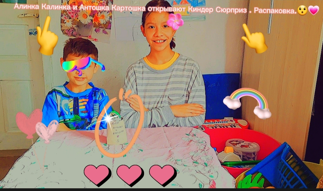 Алинка Калинка и Антошка Картошка открывают Киндер Сюрприз . Распаковка.??