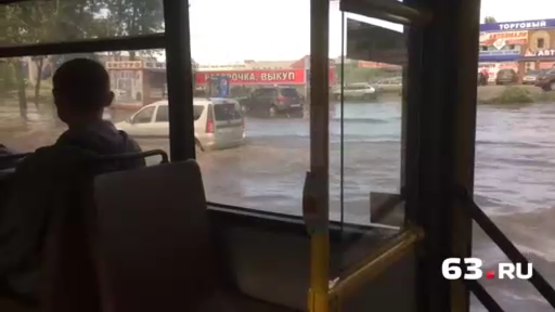В Тольятти пассажиры проплыли на автобусе из-за сильного ливня.