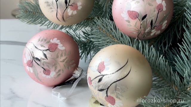Набор стеклянных шаров ДИКИЕ ТРАВЫ перламутровый и нежно-розовый, 8 см, 6 шт., 133653