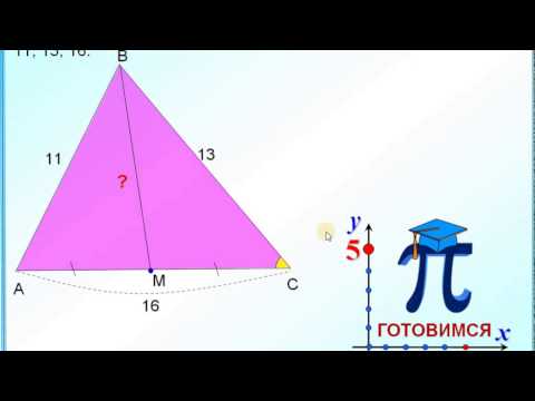 Найдите длину медианы ВМ треугольника АВС, если стороны треугольника АВ, ВС и АС соответственно равны 11, 13, 16.
