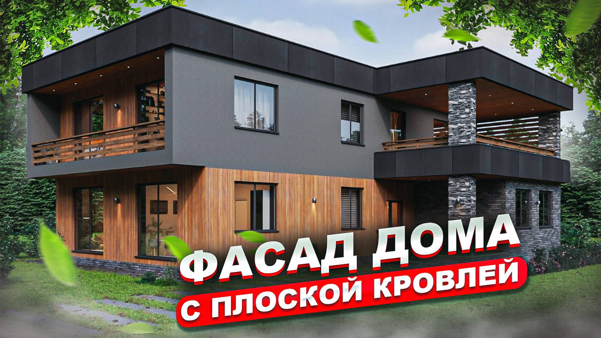 Отделка фасада дома с плоской кровлей.