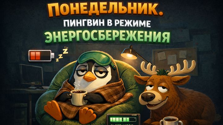 Понедельник. Пингвин в режиме энергосбережения.