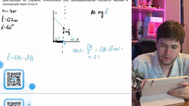 Однородный стержень АВ массой 4 кг и длиной 70 см опирается на вертикальную стенку, образуя - №22002