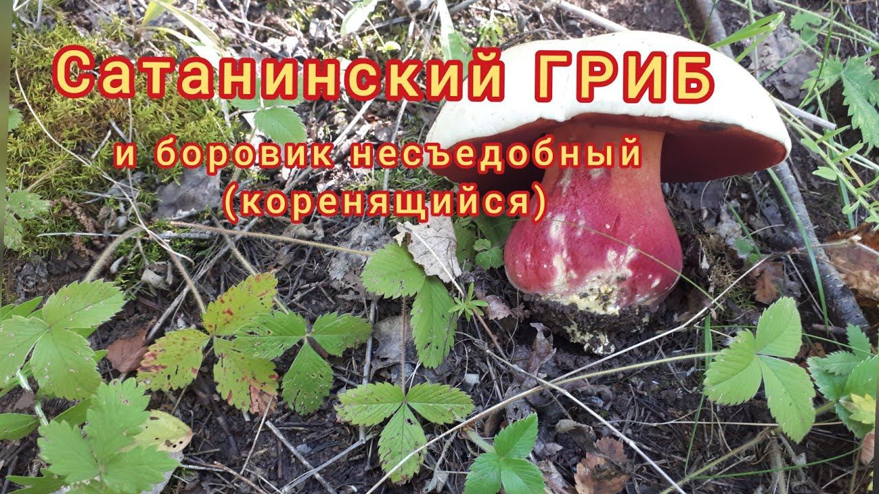 На видео вы можете видеть 2 вида несъедобных но похожих друг на друга гриба, оба болетовые, сатанинский гриб и боровик коренящийся. Оба гриба очень горькие на вкус. Можете лизнуть ножку и так проверить их на съедобность. Оба гриба синеют на срезе. У сатанинского гриба ножка красная а шляпка белая. У боровика коренящегося ножка светлая, шляпка более темная чем у сатанинского. У грибов горечь не проходит даже после термической обработки. Не ядовиты, но в пищу не используются.