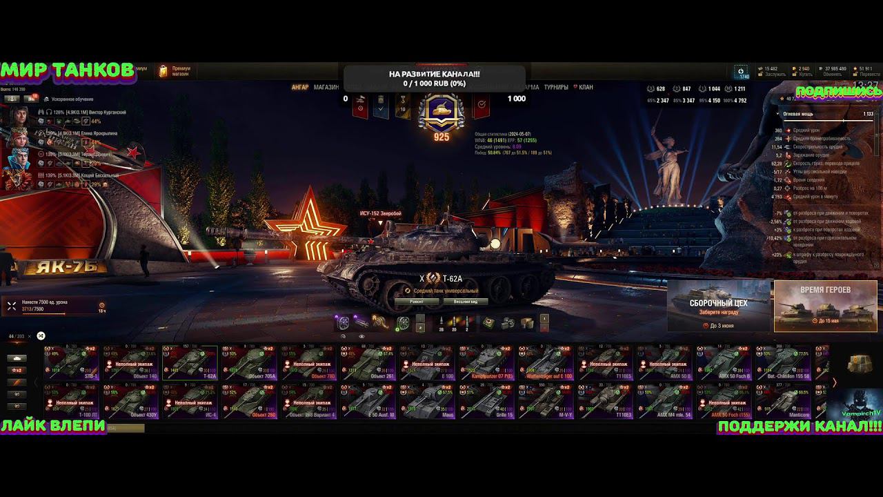 Приветствую вас танкисты!!! Мир танков Время героев. О СОБЫТИИ: Время, когда каждый день был испытанием, а каждый шаг требовал мужества. Время, когда нужно было во что бы то ни стало спасти родную землю. Время героев. В новом игровом событии мы перенесёмся в 1944 год, когда территории БССР и других областей СССР были освобождены от немецких захватчиков. Что вас ждёт: бои на советской технике против машин под управлением искусственного интеллекта; изменнённые карты с многочисленными препятствиями и засадами; прогрессия «Путь к Победе», за прохождение которой можно получить премиум танк VII уровня Т-34М-54 и другое ценное игровое имущество. Используйте эту ссылку: https://tanki.su/ru/game/download/ Начинайте играть!!! Смотри Меня и Подерживай на: STEAM https://steamcommunity.com/profiles/76561198036037187 ☑️VampirPIRAT https://youtube.com/channel/UCTIjM4DRlrlFQ0UqlWl-bsA Trovo https://trovo.live/s/VampirchTV Vk Группа https://vk.com/club4723323 ✈Подержка канала https://donationalerts.com/r/piratvampir Дискорд https://discord.com/channels/936291870634573854/965873761100378112 boosty https://boosty.to/vampirchtv VK Play Live live.vkplay.ru/vampirchtv МОЕ ЖЕЛЕЗО ►Корпус Powercase Mistral X4 Mesh ►Процессор Intel Core i5 9600К ►Материнская плата ASUS ROG STRIX Z370-F GAMING ► Накопители Samsung1TB Kingston M.2 1ТБ ►Оперативная память Kingston DDR432Gb(2x16Gb)3200 ►Модель видеокарты RTX 3060 12GB ►Монитор Xiaomi 30" Mi Curved Gaming Monito Samsung FHD-монитор SD300 [S24D300H] ►Клавиатура Asus TUF Gaming K1 черная ►игровая мышь Logitech G G903 Lightspeed Hero ►Микрофон Fifine A6T ►Беспроводная компьютерная гарнитура Logitech G G435