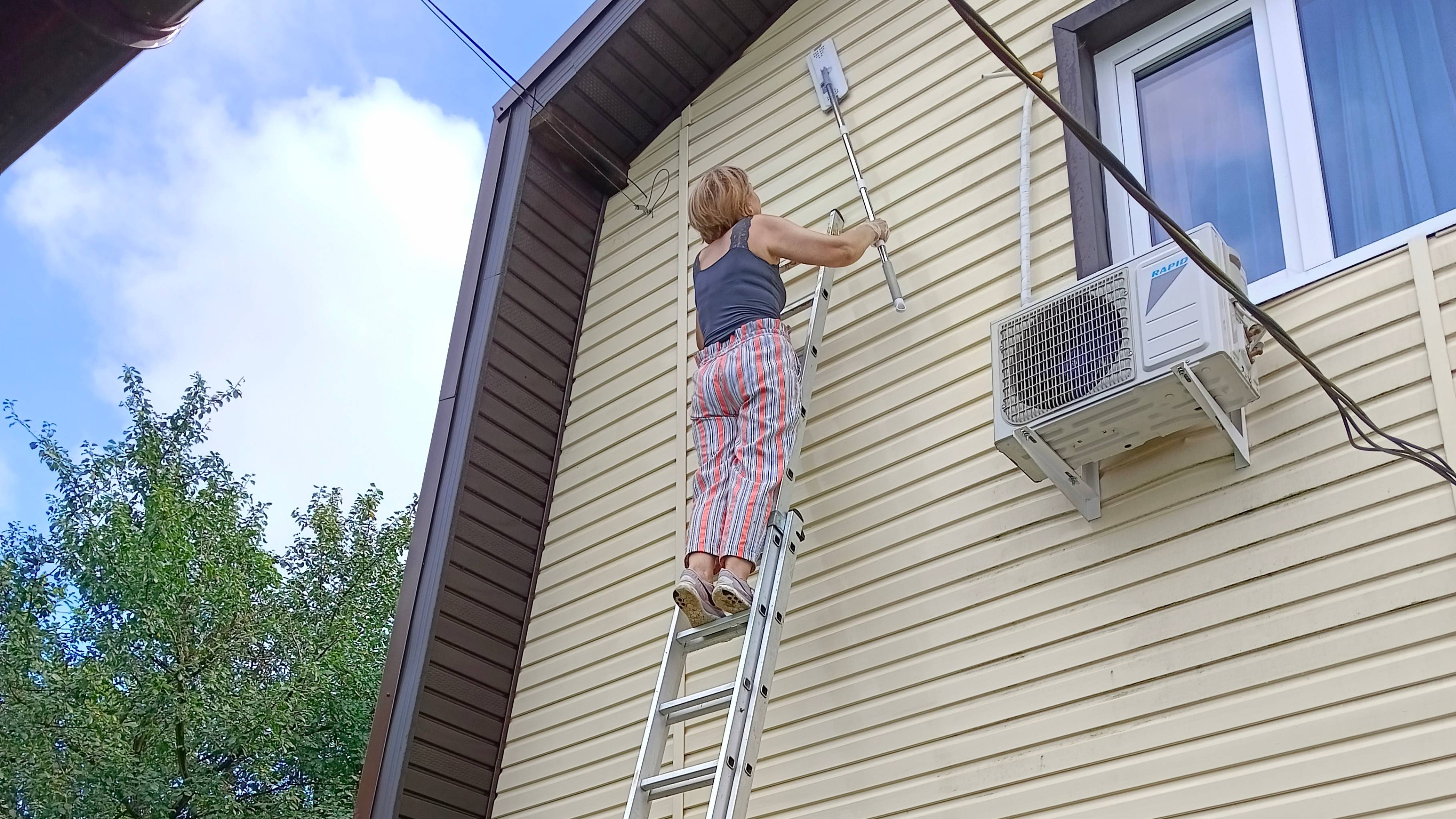 Как мы с женой мыли свой дом. Меня жена наверх не пускала, но пару раз я тоже залезал под крышу :-)