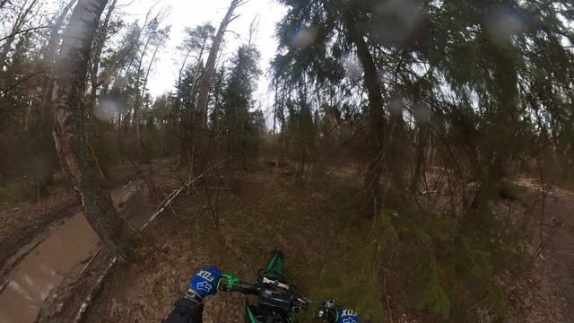 прохват через лес на эндуро в дождь