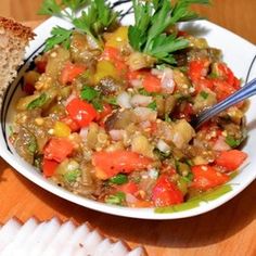Баклажаны 8 шт. Болгарский перец 3 шт. Перец чили 1 шт. Помидоры 4 шт. Лук 3 шт. Чеснок 50 гр Зелень 40 гр Растительное масло 150 мл Соль2 чайн.л. Перец черный молотый 2 ч.л